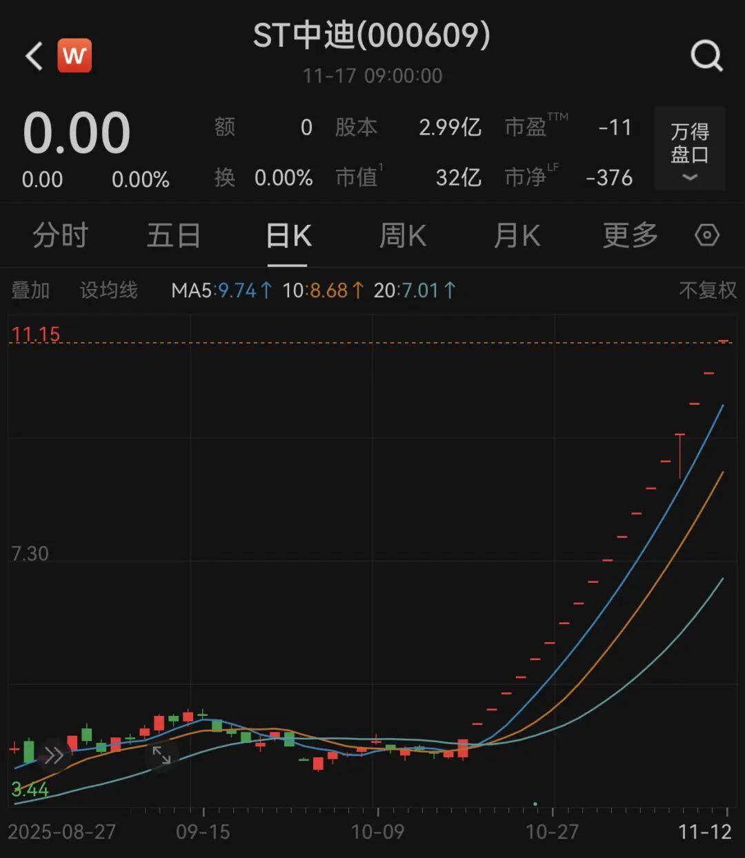 近日,资本市场的焦点再度聚焦于ST中迪(000609)。11月17日晚间,ST中迪发布公告称,经公司申请,公司股票将于11月18日(星期二)开市起正式复牌。值得一提的是,在停牌前,ST中迪的股价已经连续19个交易日涨停,这一表现无疑吸引了众多投资者的目光。