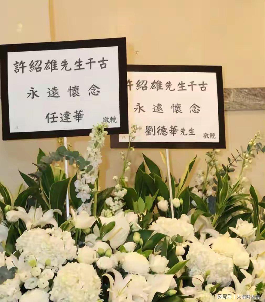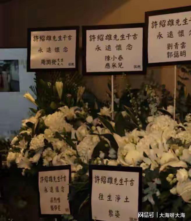 追悼会选址香港大围宝福纪念馆,当日细雨绵绵却挡不住送别人群。灵堂中央悬挂着许绍雄标志性的咧嘴笑照片,四周白花簇拥,香炉青烟缭绕。“永远怀念”的横幅下,简单庄重的布置恰如其生前低调的作风。
