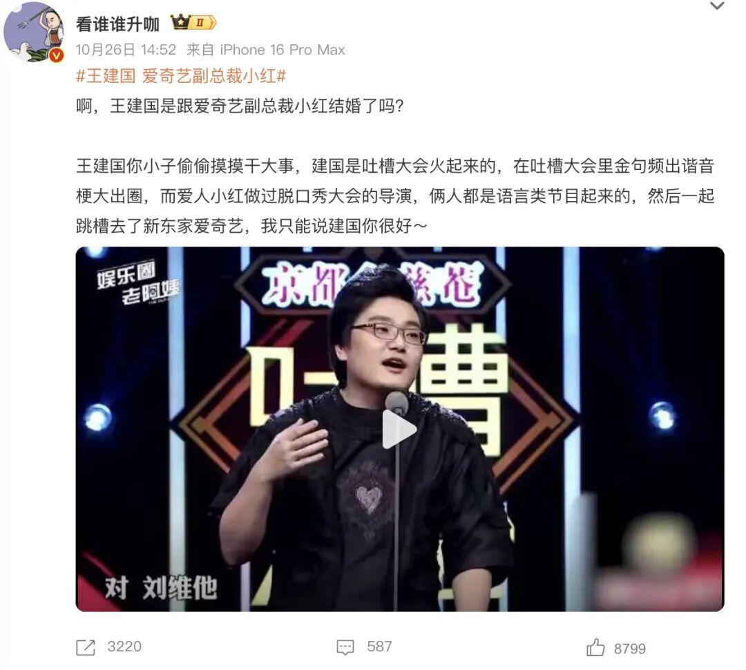 王建国疑似与爱奇艺副总裁谭晓虹结婚,甚至还有一些网友揣测谭晓虹已经怀孕。
