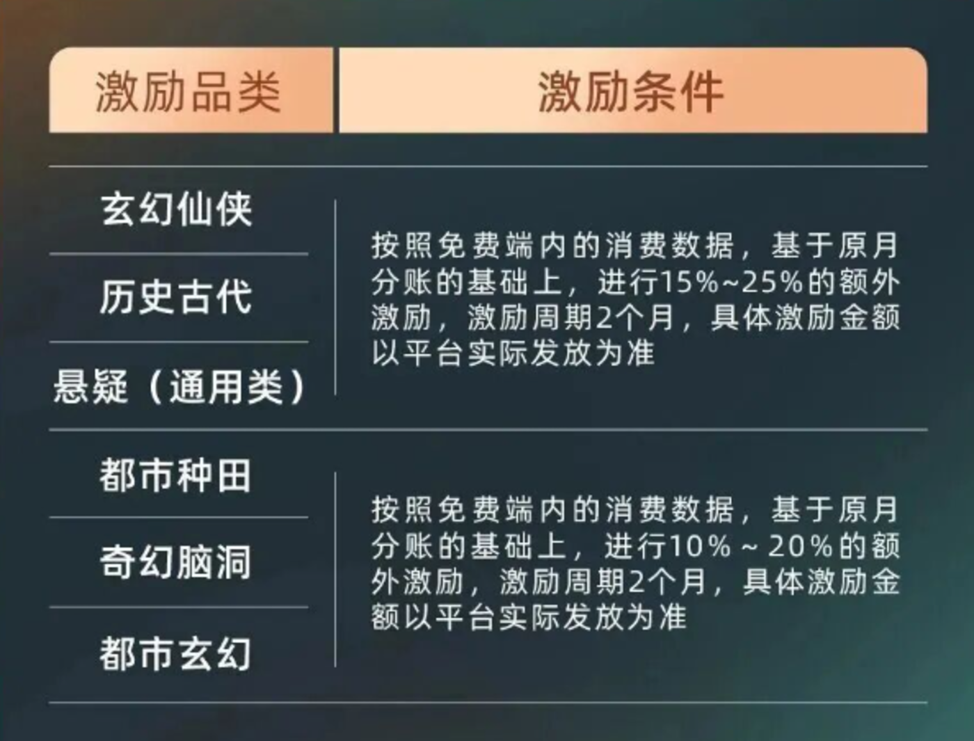 客观而言,“补贴男频”策略必要。红果也拿出实际行动,如平台推出的8 - 10月重点品类激励活动中,针对历史古代、玄幻仙侠、都市玄幻等男频题材进行专项激励,在原月分账基础上给予额外激励,鼓励创作者多拍男频剧。