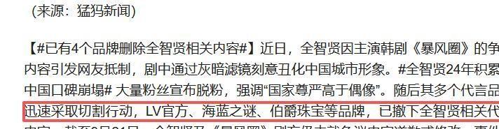 已经影响到她顶奢品牌的形象代言,品牌方火速表态,连夜与其切割。