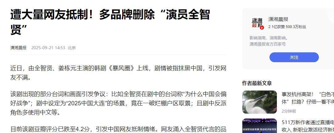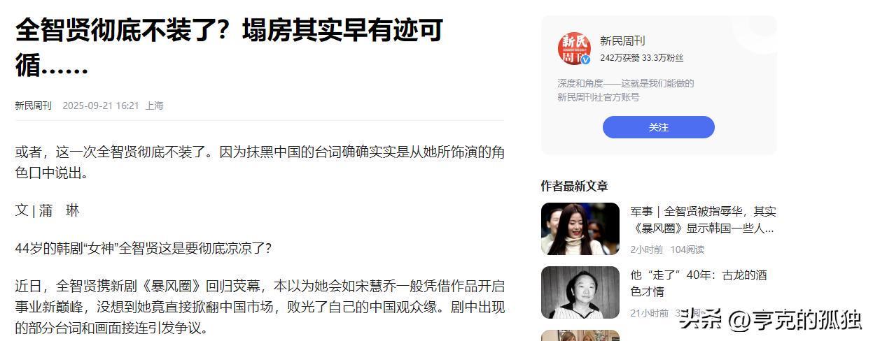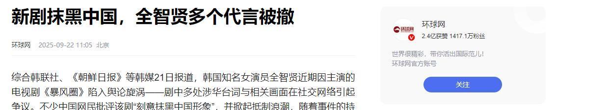 吃中国饭砸中国碗,全智贤新剧“辱华”风波还在持续发酵,目前负面影响越来越大。