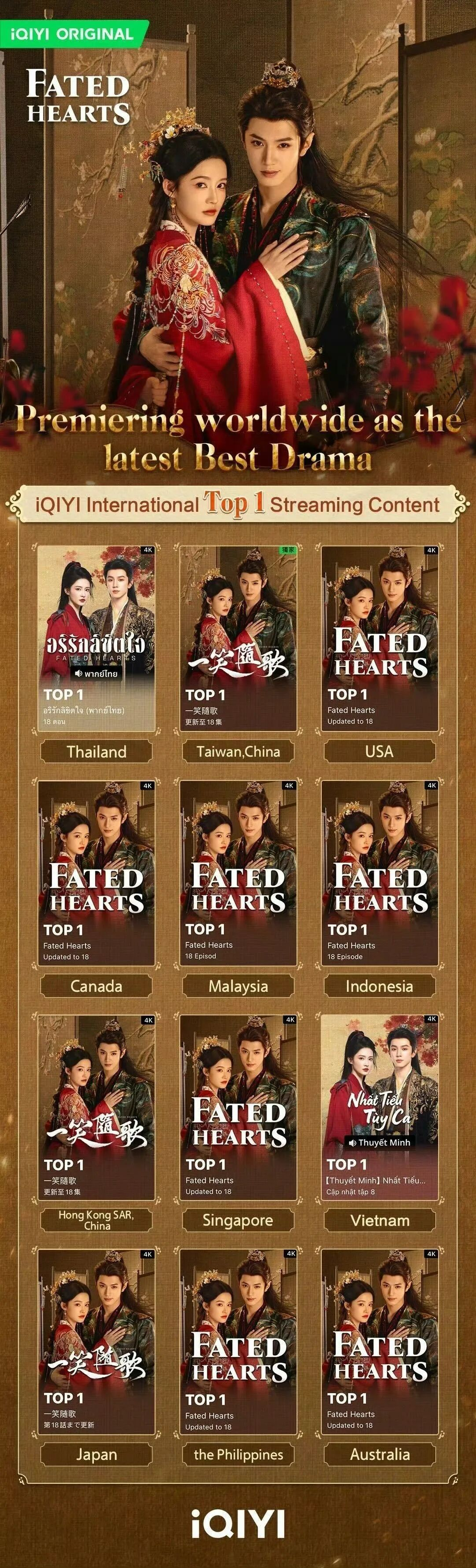 该剧自播出以来,以强劲势头席卷北美、东南亚等12个国家和地区,在当地主流流媒体平台多次登顶播放榜。在短视频领域,TikTok上#一笑随歌#相关话题播放量突破百亿次,更跻身V-PULSE全球热度榜第二位,形成跨文化传播的破圈效应。国内市场同样表现卓越,爱奇艺站内热度值突破9100点,弹幕互动量破亿,连续占据多个权威榜单榜首。