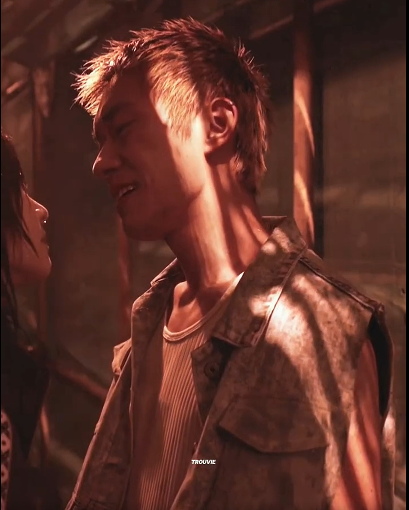 黄发迷魂者阿波罗(易烊千玺饰)遇上仿生人少女邰肇玫(李庚希饰),从枪林弹雨的试探,再到卡拉OK厅里混乱的打斗,两个孤独的灵魂在末日边缘不断拉扯,情感张力拉满。其中一句标志性台词“我还没咬过人,我还没接过吻”,瞬间点燃观众情绪,让人直呼“这很难不磕疯”!