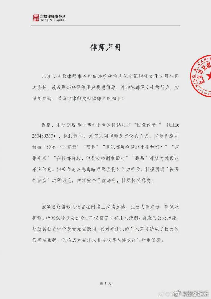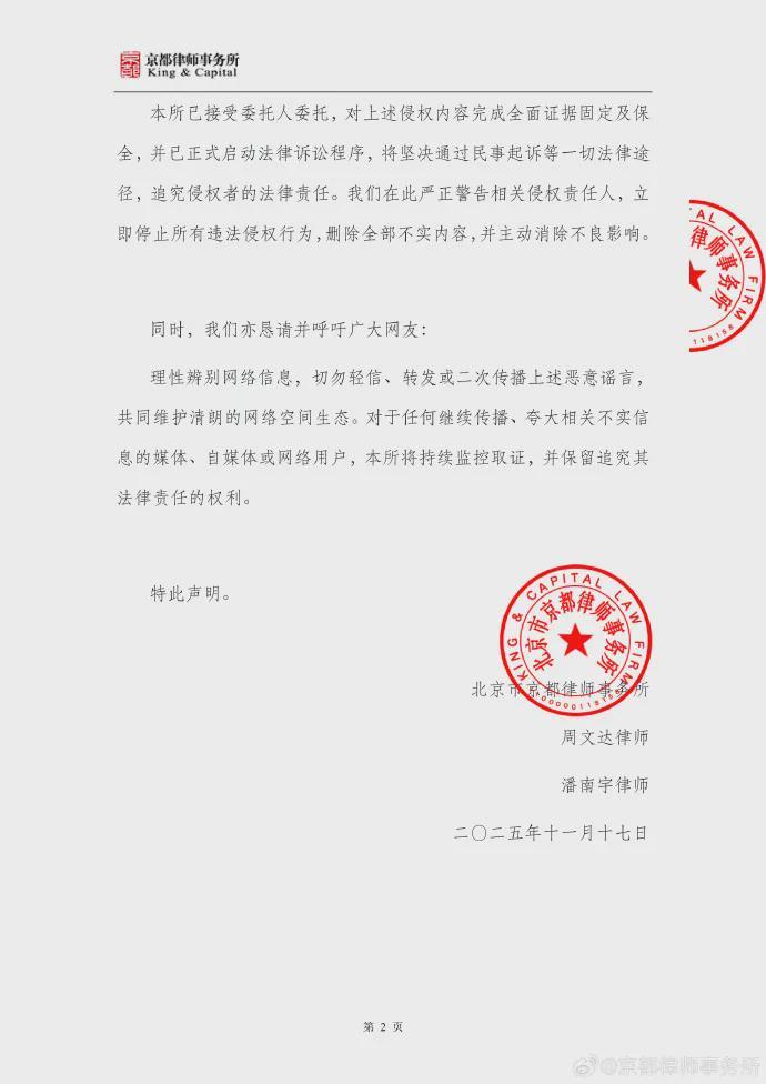 针对这一恶意造谣行为,京都律师事务所于昨天(11月17日)发布声明称,已正式启动法律诉讼程序,将起诉该视频作者,以维护陈都灵女士的合法权益。声明明确指出,用户通过恶意剪辑视频及发布诽谤性言论,已构成对陈都灵名誉权的侵害,法律将严惩此类行为。