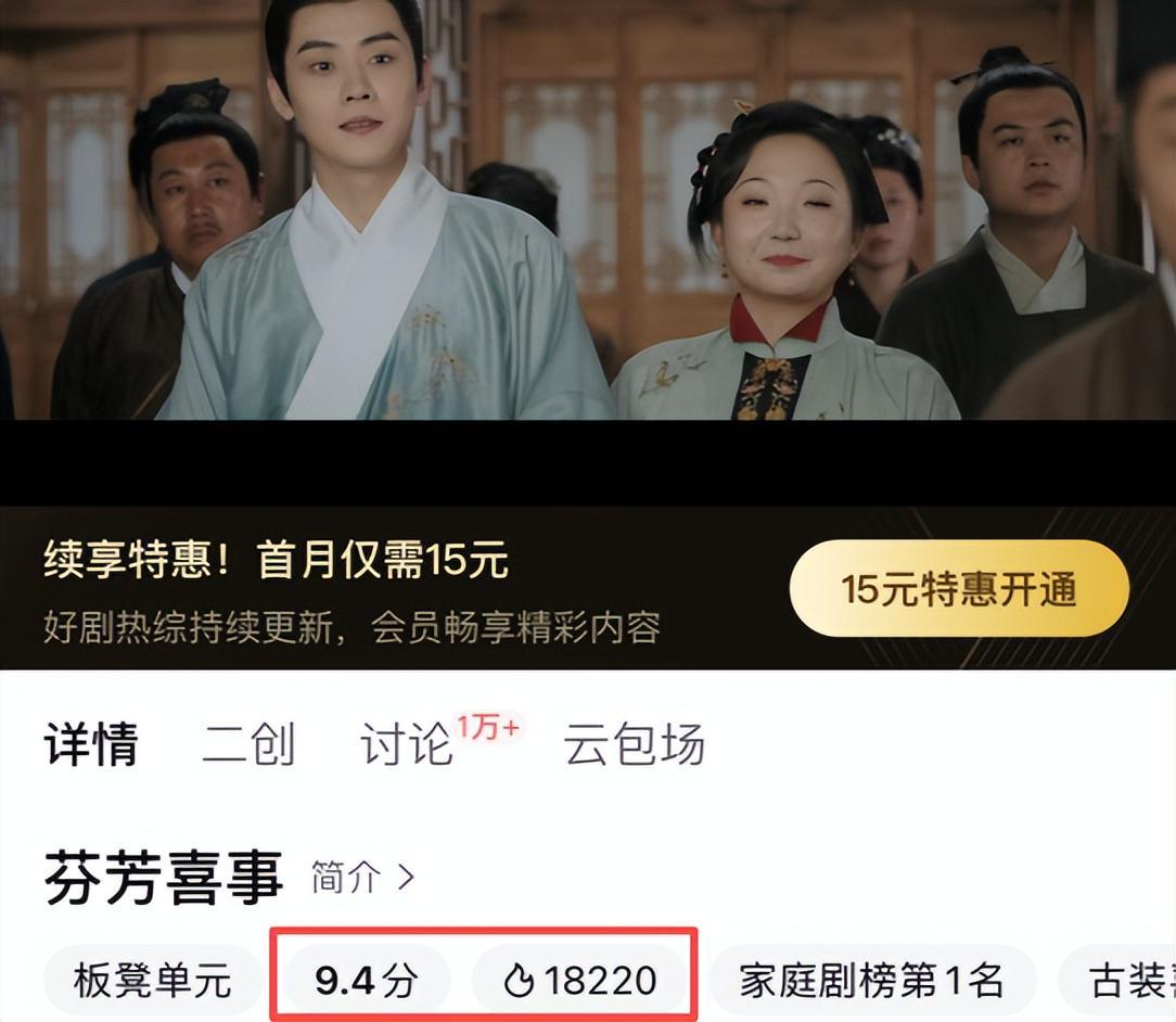 豆瓣7.8分的《兰闺喜事》“姐妹篇”《芬芳喜事》上线鹅厂,才播20分钟站内评分高达9.4分,与此同时,该剧热度飙升直破18000。