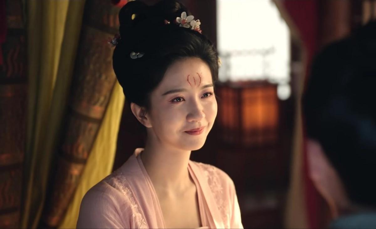 结尾时放下仇恨,换上一身淡粉色衣衫,即便额间有黥刑后留下的疤痕,也依然貌美过人。