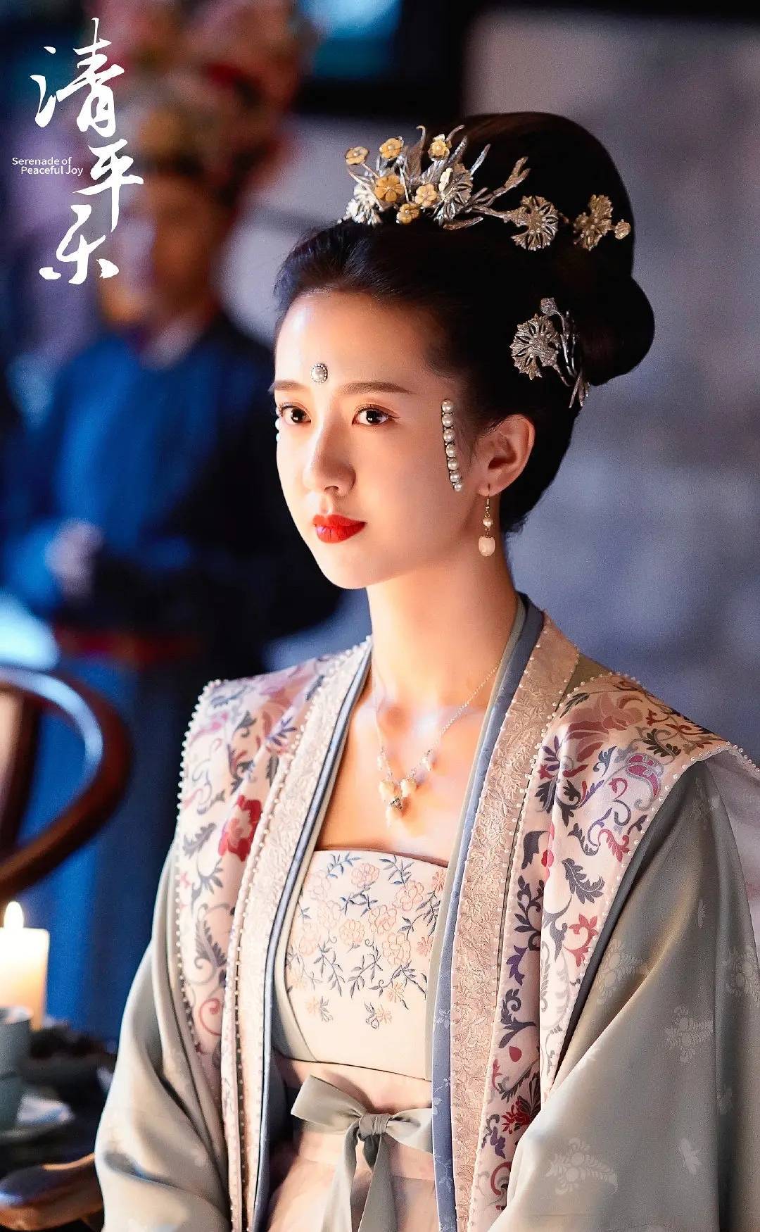 再往前追溯,还出演过《清平乐》中的苗娘子,素雅清透又不失贵气的古装扮相,颇有宋代美人的古典韵味。