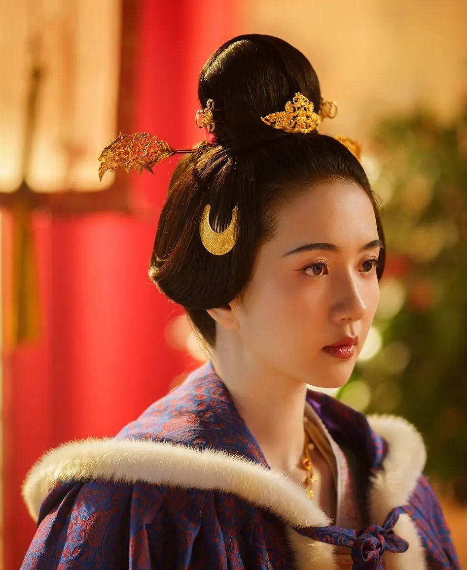 当丈夫在额间为其刺上花钿后,更是将唐代美人的优雅端庄,雅致清秀展现得淋漓尽致。