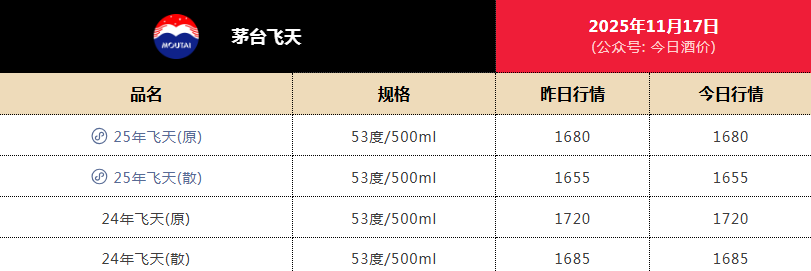 茅台的崩盘并非毫无预兆。2024年,53度500ml装飞天茅台酒的市场价接连失守2500元/瓶平衡线、2400元/瓶关口、2200元/瓶酒商底线,直奔2000元/瓶而去。而今年,这一趋势更是愈演愈烈,眼瞅着就要奔着1000元去了。