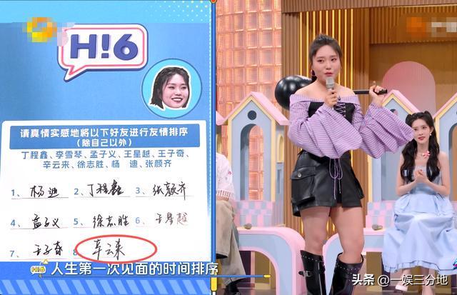 等到揭晓友谊排序的时候,李雪琴虽然表示,自己是按照认识顺序排的,但辛云来的倒数第一却是不争的事实。