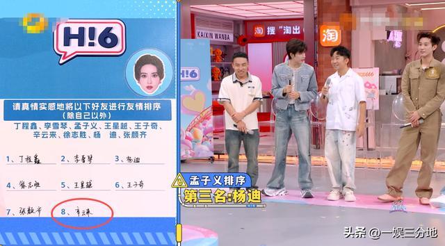等到孟子义公布自己的友谊排名,辛云来又是最后一名。