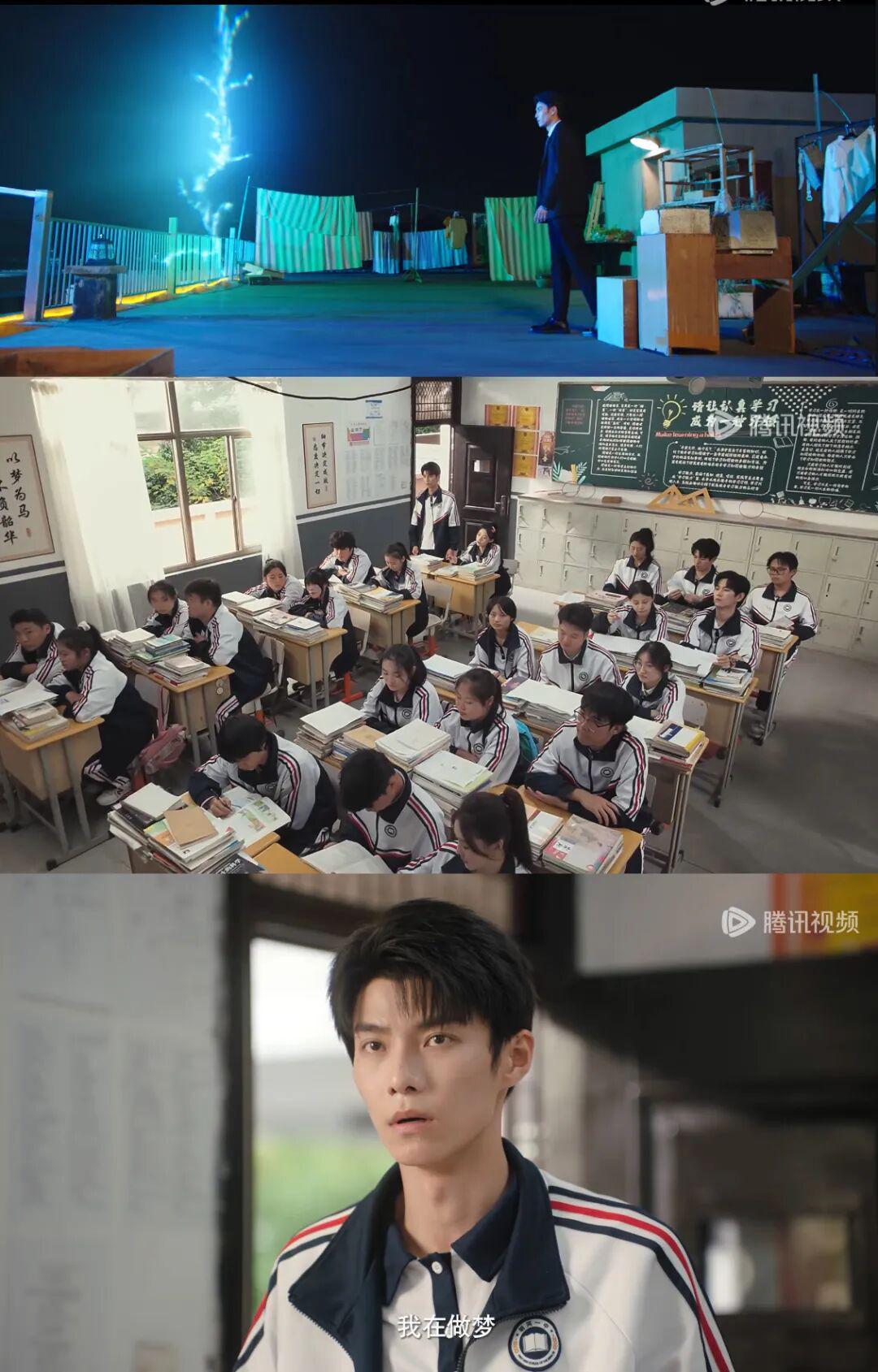 剧中长大成人的同学们去看望蒋老师,余星辰是最五味杂陈的一个,因为刚经历穿越回校园、和蒋老师聊人生理想,回到现实却是班主任躺在病床上,仍心心念念惦记着大家的前途。