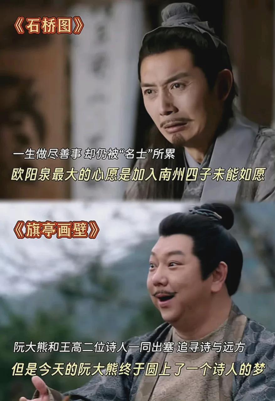 “旗亭画壁”是唐代著名的文学典故,讲述了王之涣、高适、王昌龄在旗亭酒楼赌唱诗的文人雅事。编剧巧妙地将这一典故转化为剧情骨架——冷籍(王之涣原型)、高达(高适原型)、王幼伯(王昌龄原型)三位诗人的诗词对决,不仅复刻了“以诗定高下”的文人风雅,更让歌姬唱诗的场景成为情感爆发的引线。