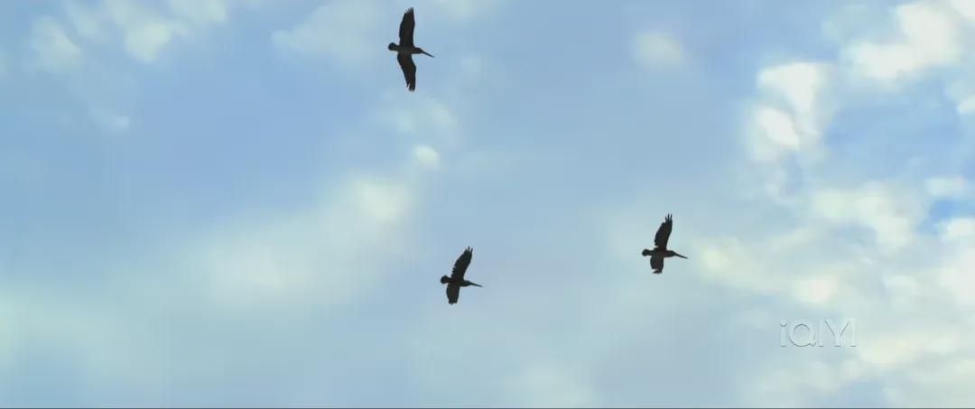 阮大熊三人策马疾驰而去时,镜头给了天空的三只飞鸟一个特写,海阔凭鱼跃,天高任鸟飞,只要心自由,天地任你驰骋。