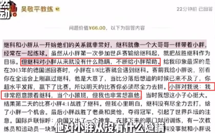 据吴敬平教练所述,张继科就像大哥哥一样带着小胖练球。
