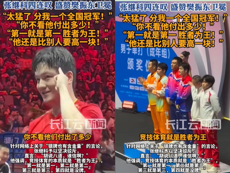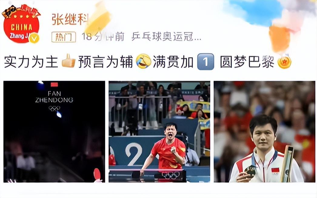 然而,当樊振东拿下全运会男单冠军时,许久没有消息的张继科竟因一个举动实现了口碑暴增。