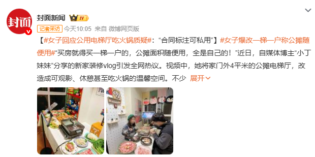 #女子回应公用电梯厅吃火锅质疑#
