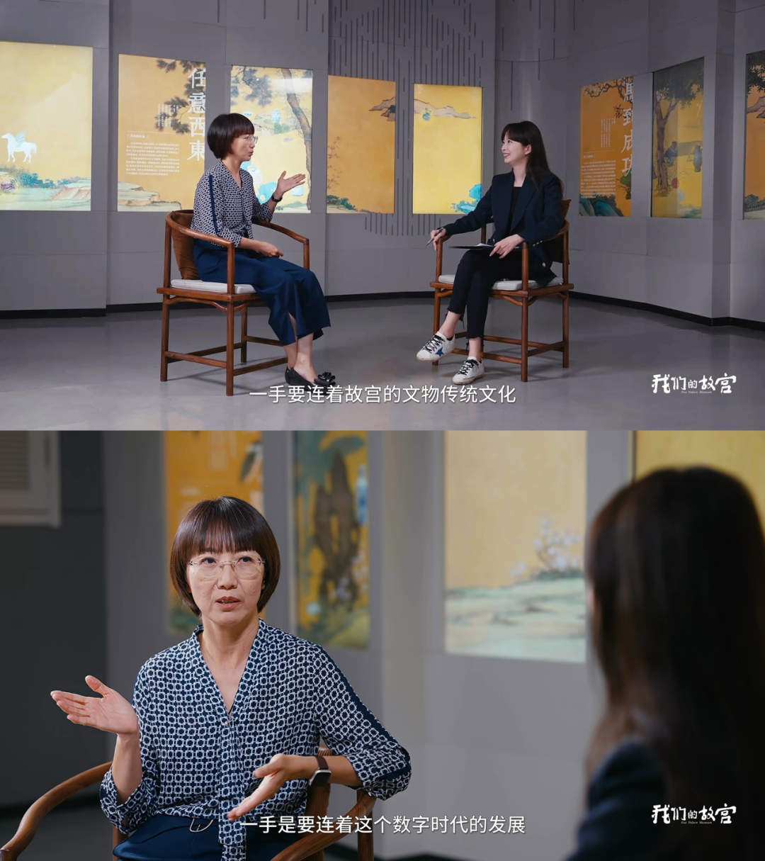 影片通过新华社主持人的探访,呈现出故宫百年大展的筹备过程,更以亲和而具网感的对话,解锁一道道属于“故宫人”的情感与记忆之门。例如首集中,主持人张扬以“数字化是否只是备份、是退而求其次的选择”这一尖锐提问,直面故宫博物院数字与信息部主任,激发了一场关于传统与数字关系的思辨,也映照出故宫人在技术变革中的真实思考与价值抉择。