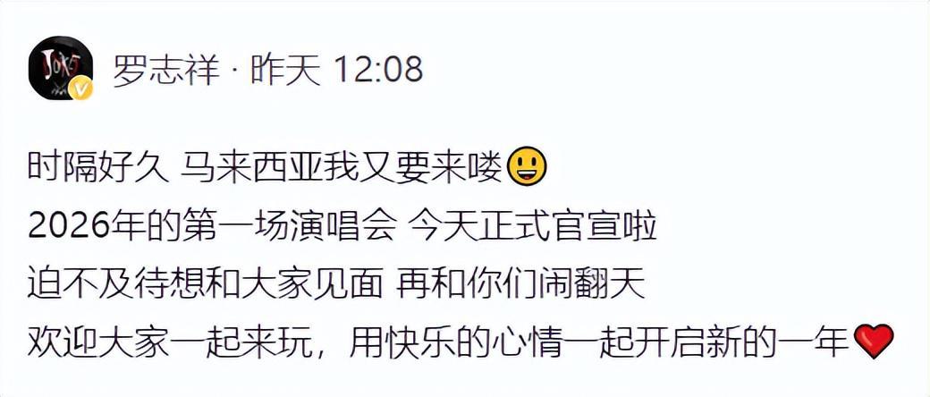 就在前几天,他还在社交账号上宣传自己在2026年年初要在马来西亚举行的演唱会。