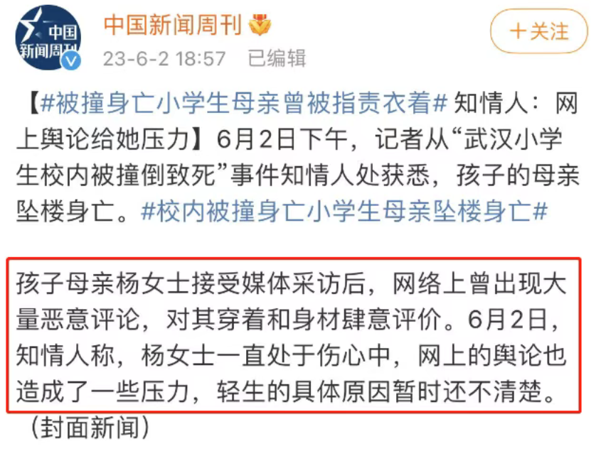 就比如前年那位武汉「小学生校内被老师开车撞倒身亡」事件中的母亲杨女士。