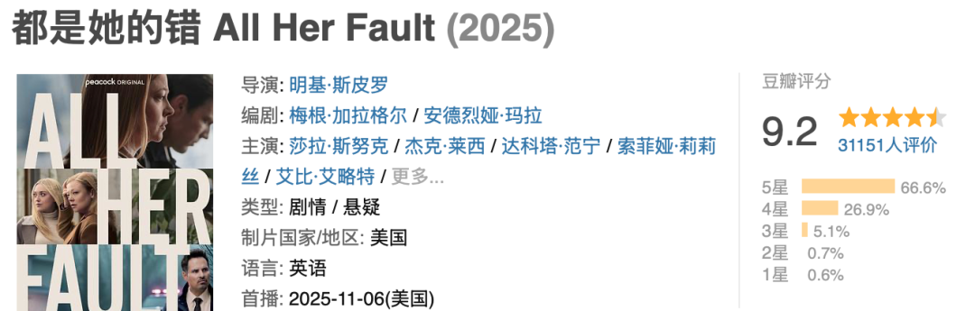 《都是她的错》不是一部简单的悬疑剧,它用一场儿童失踪案,串联起母性、父权、阶级、正义等多重议题,让观众在紧张刺激的剧情中,被迫反思自己是否也曾参与过对女性的苛责?