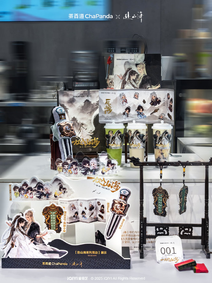 《赴山海》的60余家合作品牌中,约20%同时布局剧内广告与剧外联名。三得利、敷尔佳等品牌通过产品植入与主题礼盒的双重曝光,将剧中情感转化为消费场景。例如,剧中主角饮用的李子园饮品,次日便在商超上架同款;茶百道则深度融合剧情,推出“豆乳玉麒麟调制教学”并上线三款角色联名饮品,配套限定贴纸、亚克力立牌等周边,线下主题门店更引发打卡热潮。