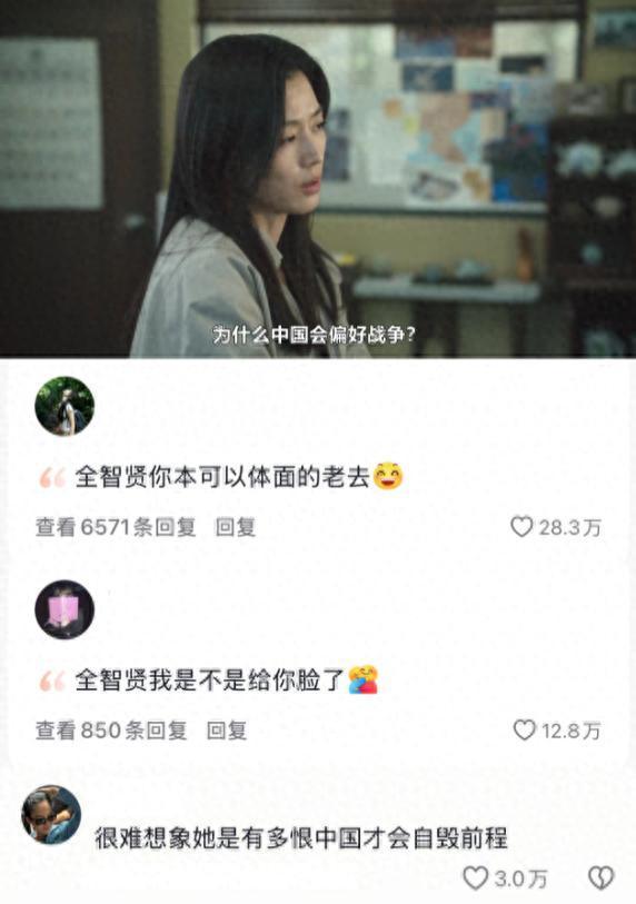 作为韩国最具影响力的顶级演员之一,全智贤凭借精湛演技和出众气质,在中国积累了庞大的粉丝群体,长期享有极高的国民好感度。然而,在新剧《暴风圈》中,她所饰演的角色徐闻柱竟说出“为什么中国会偏好战争?”这般荒唐言论,严重背离事实。