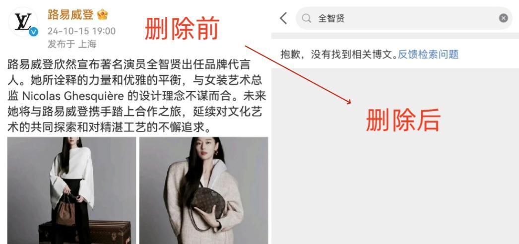 法国奢侈品牌路易威登(LV)也在两天前悄然移除国内外平台上所有与全智贤有关的宣传资料,彻底切断公开关联。