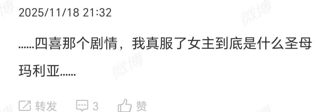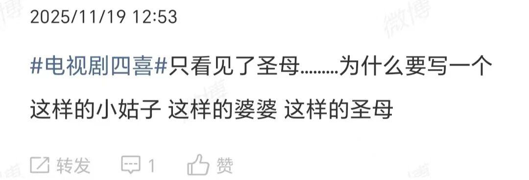 一些观众在看《四喜》时,都有这样一种感觉:沈明珠这个角色后面的一些选择,好像是为了刻意迎合一些人的一厢情愿或主观意愿,而有意设计出来的,是被有意“圣母”化了的。