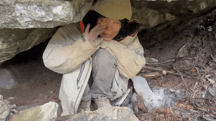 上山第一天,别人要么在找吃的要么在建房子,她一心钻木取火,坚持了几个小时,双手钻出三四个水泡,终于生火成功。她也成为所有选手里第一个生火成功的人。