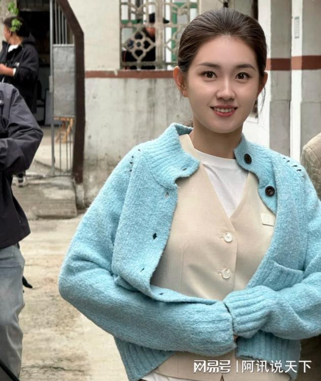有网友在横店街头拍到她,穿着件浅色裙子,腰肢细细的,但脸蛋圆润有光泽,珠圆玉润的形容真贴切,仿佛从画中走出的美人。