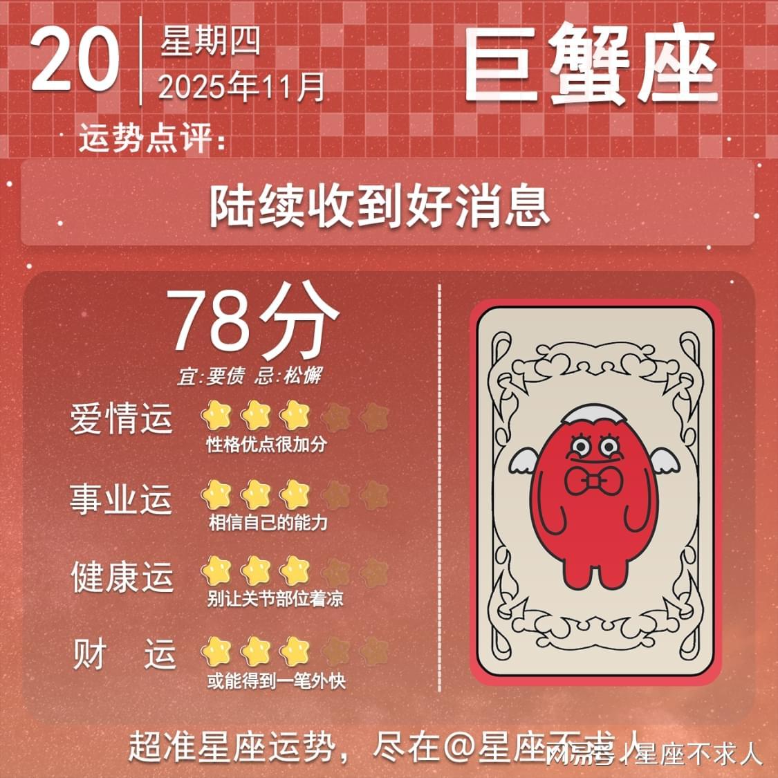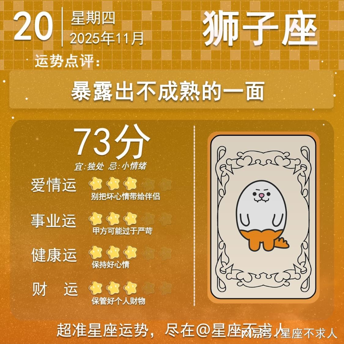 2025年11月20日,十二星座的运势各有不同。无论是事业、爱情还是财运,每个星座都将迎来独特的机遇与挑战。以下是今日各星座的详细运势分析,助你更好地把握运势变化,规划生活与工作。