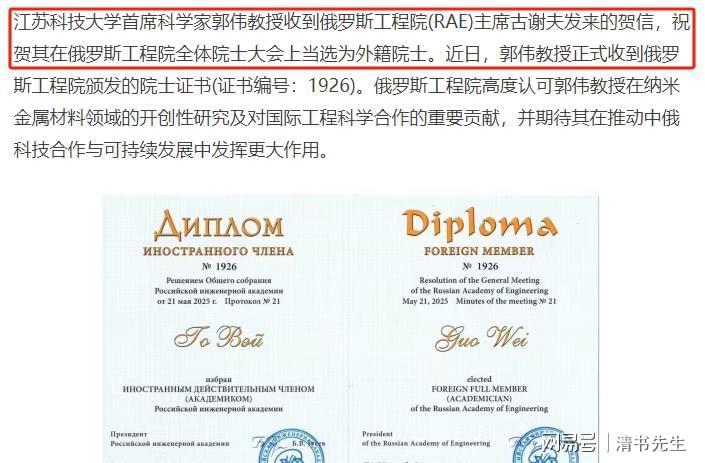 最讽刺的是,今年夏天郭伟当选“俄罗斯工程院外籍院士”后,某媒体专门报道: