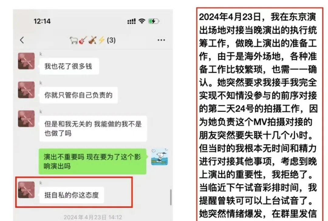 一个说着艺人霸凌普通工作人员,结果放出来的聊天记录不像佐证,反而像证明自己工作能力确实不行,都要开演了还需要艺人自己对MV素材。