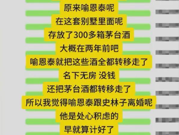 甚至在离婚前老叔还把在家里存放着的三百多箱茅台转移走了。