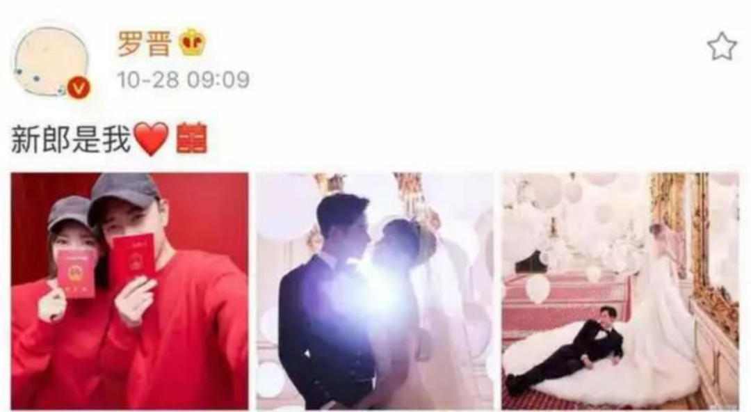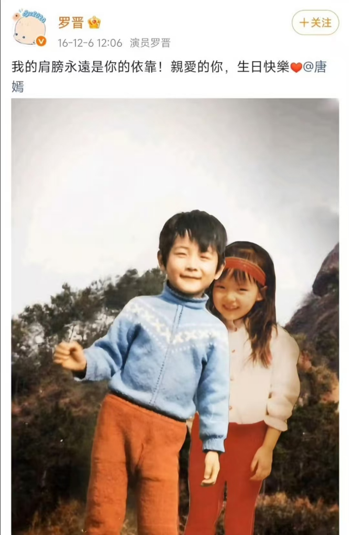 2016年唐嫣生日时,罗晋发了一张两人童年依偎的照片,并写下“缘来是你”,引得粉丝纷纷点赞。2018年10月28日,两人官宣结婚喜讯,晒出九宫格合影,配文“新娘是我”“新郎是我”,甜蜜指数爆表。