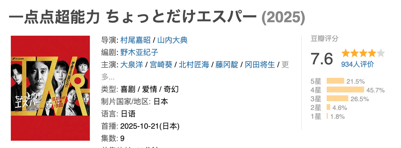 这听起来像诈骗电话的台词,却是日剧《一点点超能力》的魔幻开场。这部豆瓣7.6分的奇幻剧,用荒诞设定包裹着温柔内核,让观众一集就沦陷。