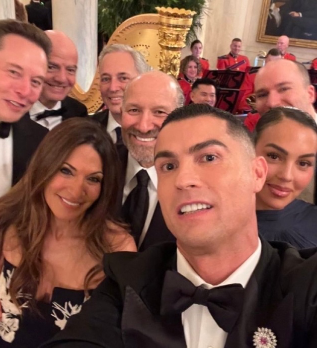 此次会面源于白宫为沙特王储举办的国宴级招待会。作为特邀嘉宾,C罗携乔治娜以奢华造型现身,两人落座于主餐桌核心区域,与特朗普保持近距离。晚宴现场星光熠熠,除政商界要员外,特斯拉创始人马斯克、国际足联主席因凡蒂诺等跨界名人亦在列。