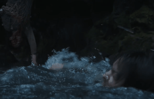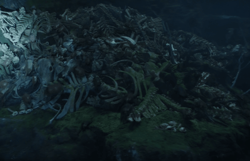 而好不容易脱险,随着小船深入,他们又看到一个由虱鳖伪装成的白衣黑发“女鬼”,而水流周围的岸上,都是各种人和动物的尸体。