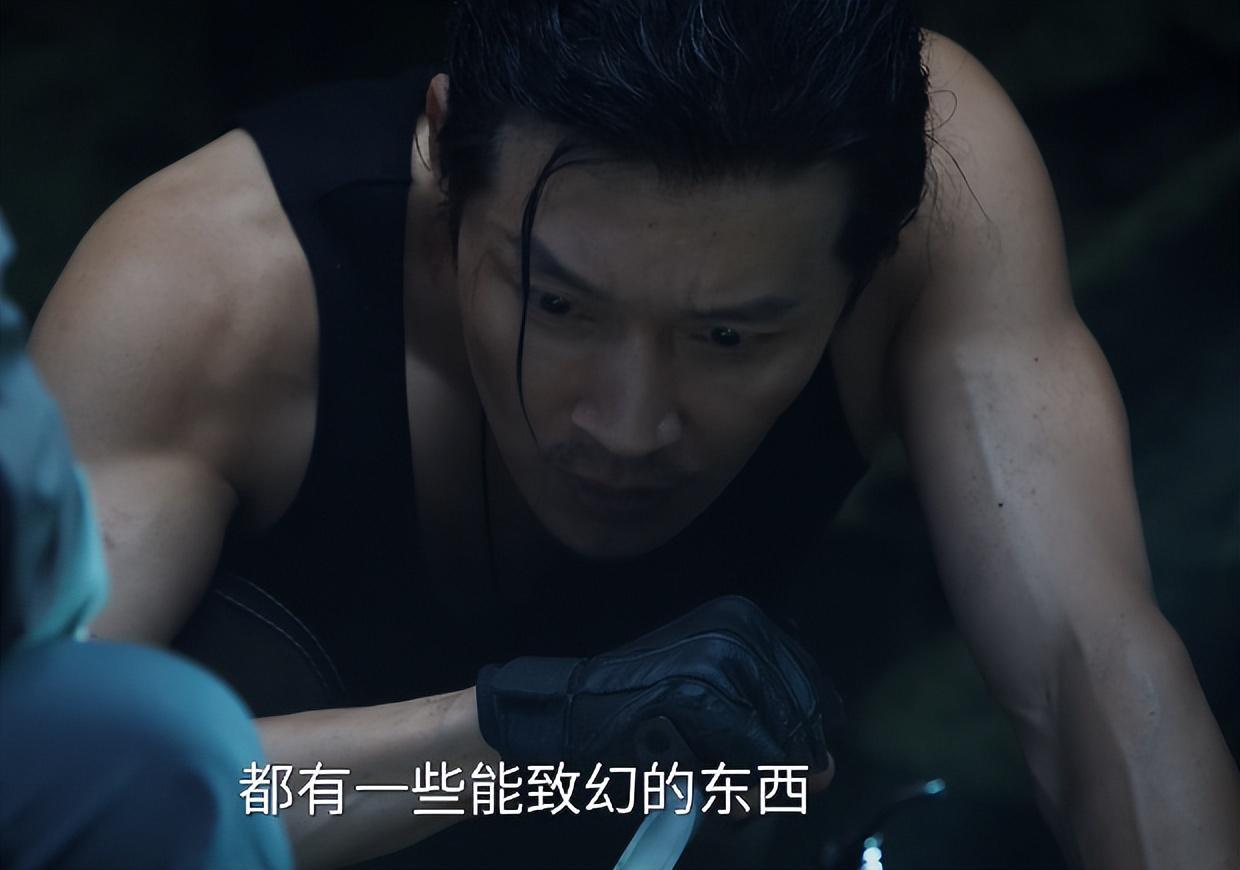 发现令人致幻、头疼的铜铃有问题时,手拿匕首,目光锐利而谨慎,胳膊上暴起的青筋让他看起来更加力量感爆棚,角色立稳了。