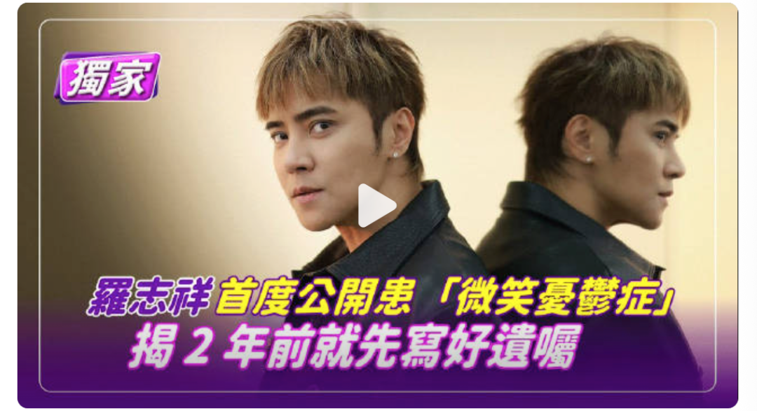 罗志祥近日接受采访时自曝被诊断出患有“微笑忧郁症”,并因对未来担忧而秘密立好遗嘱。他透露,为不影响工作状态选择停药,现在靠刷短视频及与经纪人孩子们互动缓解情绪。此外,他还宣传了自己的自传,书中为“时间管理大师”称号道歉,并暗讽昔日兄弟在他丑闻后疏远。