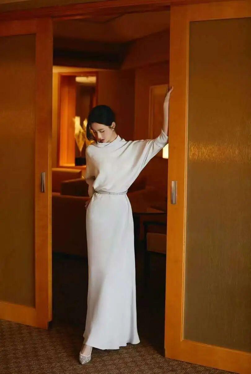 从慵懒睡衣到冷艳高开叉长裙,只在一个起身之间完成——这真的是人类该有的身材比例吗?那腰线、那腿长、那肩颈线……