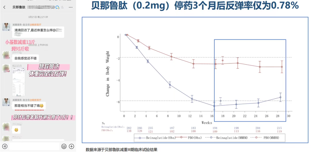 对所有减过肥、想减肥的姐妹而言,“反弹”是最担心的因素之一。但是!贝那鲁肽的反弹率仅0.78%,也就是说,用贝那鲁肽瘦下来,几乎是“一劳永逸”的。