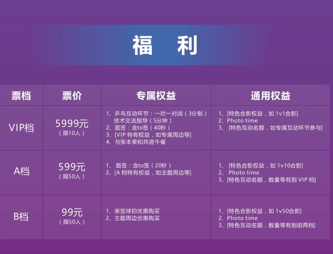 其中最受争议的VIP档权益包括:与张本美和进行3分制对战、5分钟技术指导、40秒to签(专属签名)、专属周边礼品、共进午餐及1v1合影等。该套餐定价引发广泛讨论,不少球迷认为5999元的价格远超市场合理范围,并向相关渠道发起投诉。