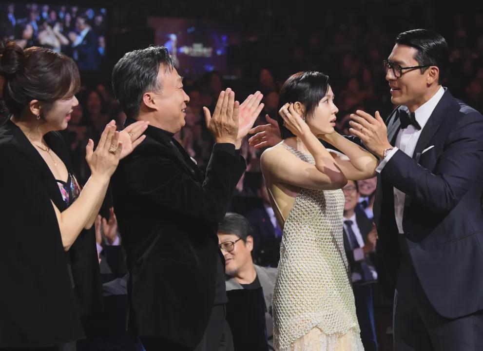 51岁女星文素利站在台上,喊话同时入围了最佳男主角和男配角奖项的朴正民,感慨他拿了两个提名还当了表演嘉宾,竟然一个奖都没有拿到。这一幕,让人不禁想起了当年的金鸡奖。