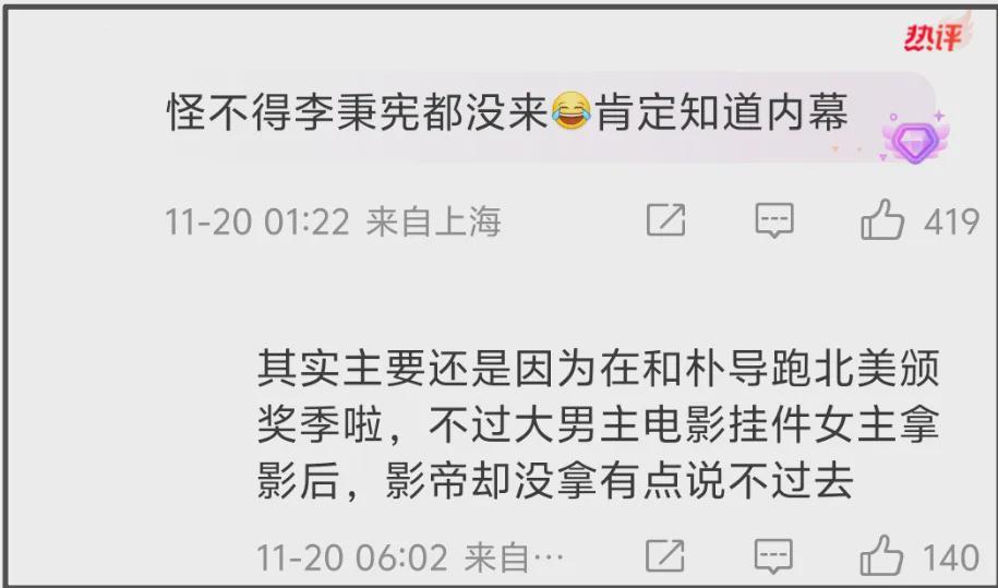 什么全是关系户呀,什么小圈子自嗨呀,什么从提名就开始水呀,什么首次提名就拿奖太水了呀……难怪中国网友吐槽青龙奖仿佛金鸡奖2.0,原来全世界都一样!