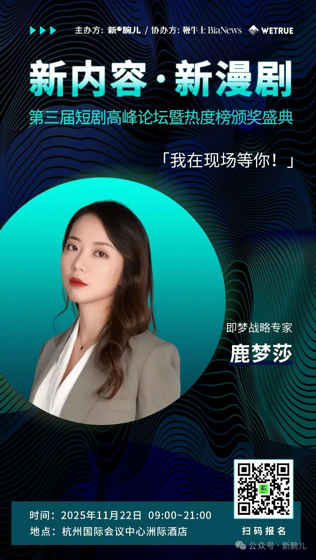 新腕儿第三届短剧大会将于三天后开幕,快手、七猫、即梦、漫谭、剧点等头部企业负责人将齐聚一堂,深度剖析漫剧市场真实战况。大会设置主题演讲、圆桌论坛等环节,现开放企业报名通道,欢迎符合条件的短剧企业联系参与分享。
