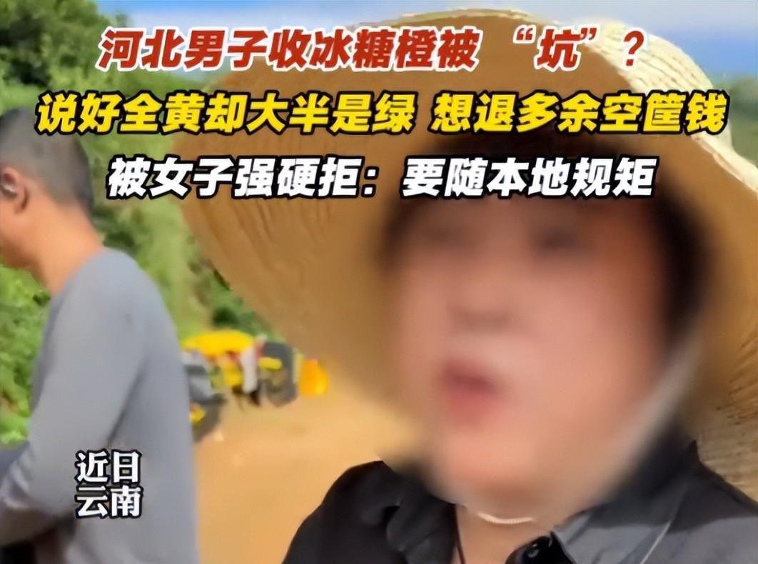 意识到被骗后,李先生强压怒火找王某某理论,没想到对方瞬间翻脸:“云南规矩就是果子带点黄就算成熟,你不懂就别来收购!”当李先生提及之前约定时,王某某竟嚣张回应:“在云南难道就按河北的规矩办事吗?”