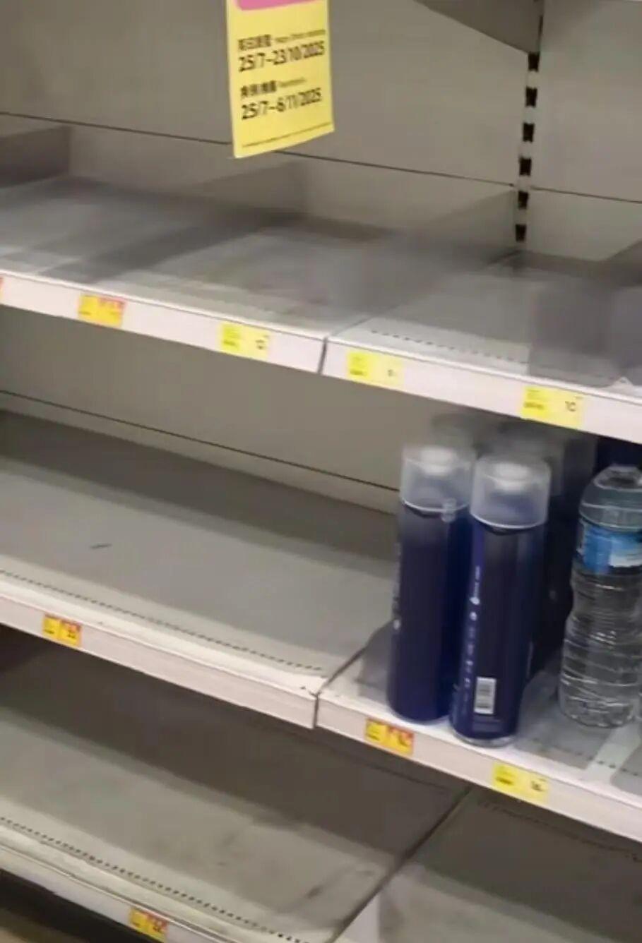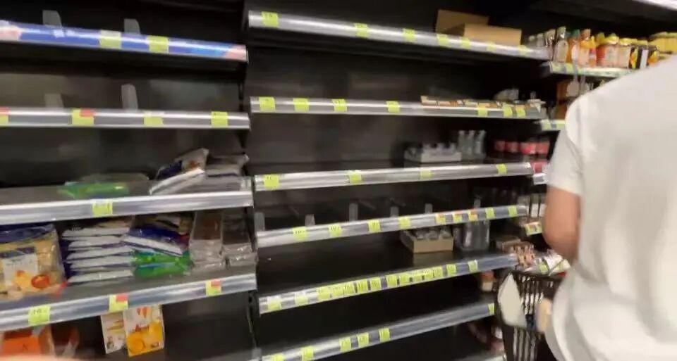香港网友所在超市泡面面包货架被抢购(视频截图)